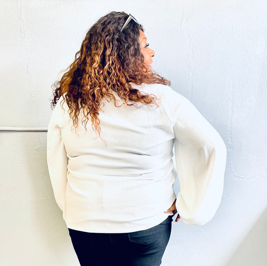 MAIN STRIP- V Neck Bubble Sleeve Solid Top