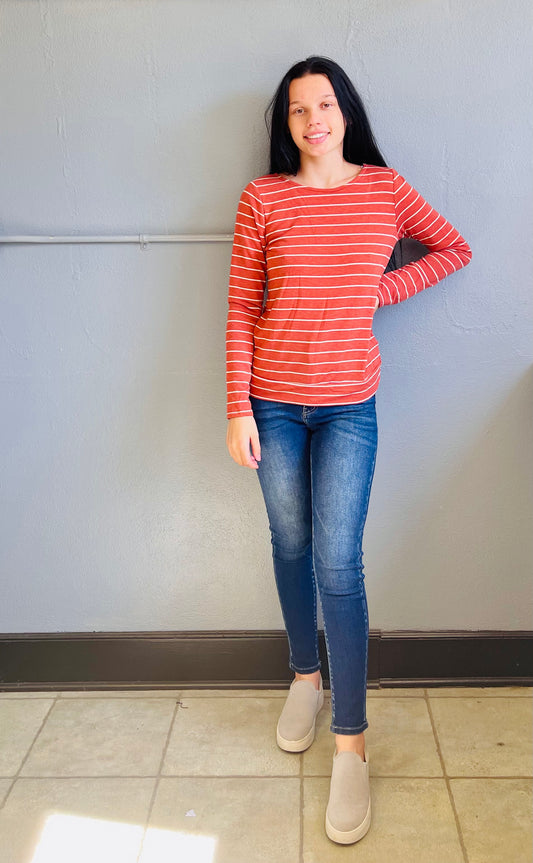 STACCATO- Round Neck LS Exposed Stitching Brushed Top