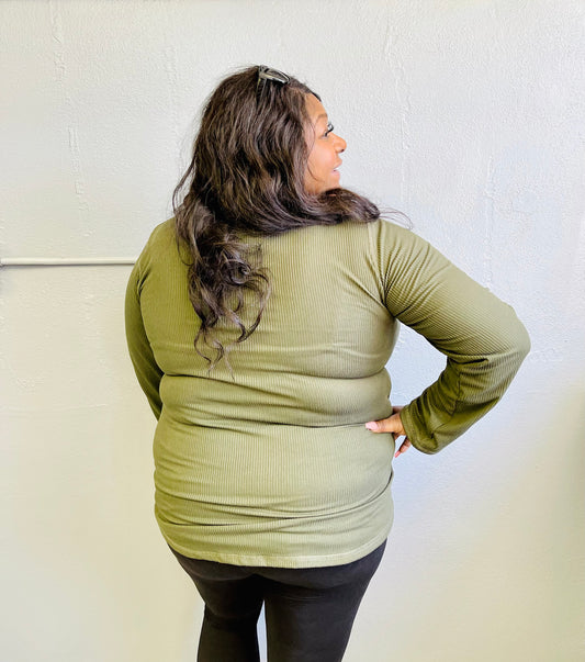 HEIMISH- PLUS Solid Ribbed Top w/ Button & Stitch