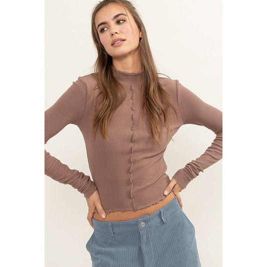 DOUBLE ZERO- Turtle Neck Drop Shoulder LS Crop Top