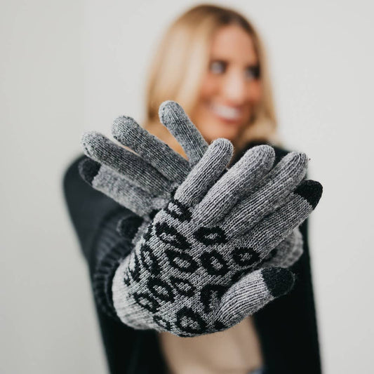 Leopard Knit Smart Touch Gloves: Black