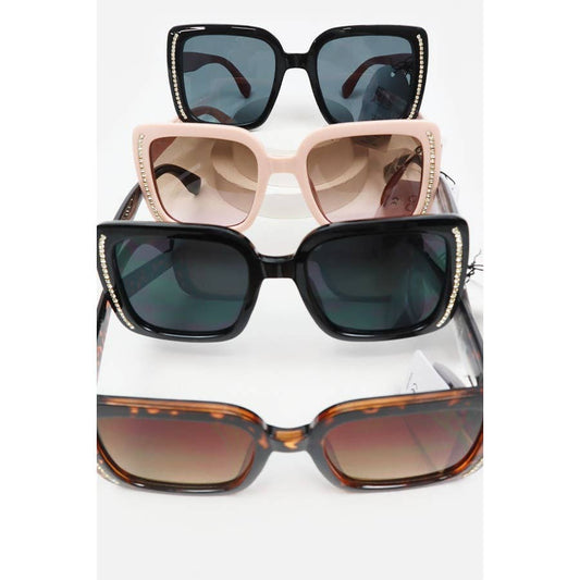 Rhinestone Trim Rectangle Sunglasses: MIX COLOR / ONE