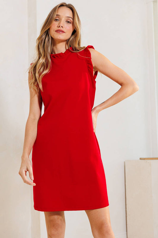 Ruffle Sleeves&Neck Solid Tunic Dress / DY5258NSB: S-M-L (2-2-2) / ROYAL