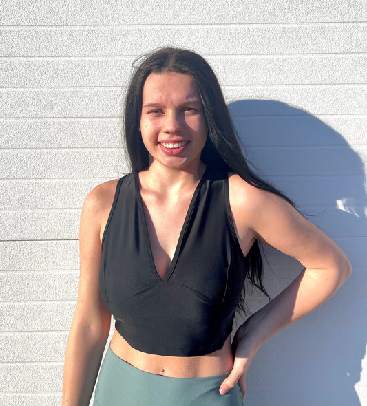 MAIN STRIP- Deep V Neck Back Cut Out Bra Top