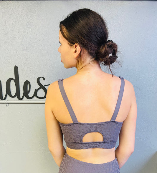 MONO B- Leopard Jacquard TACTEL® Peekaboo Back Adjustable Sports Bra