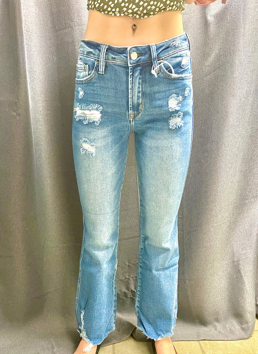 YMI- Junior 1 Button High Rise Fray Hem Flare Jean
