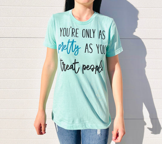 MINT ELEPHANT- "You're only as pretty as you treat people" Graphic Tee