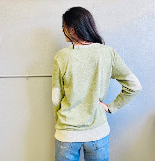 Saved By Grace | French Terry Sweater with Elbow Patches | Military Green