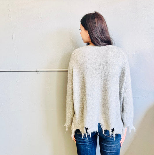 SEE AND BE SEEN- Sparkly Grey Fringe Sweater