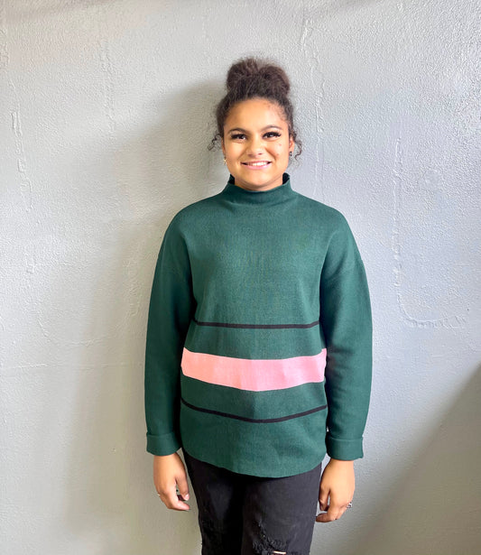 HEM AND THREAD- Green Sweater w/ Stripe