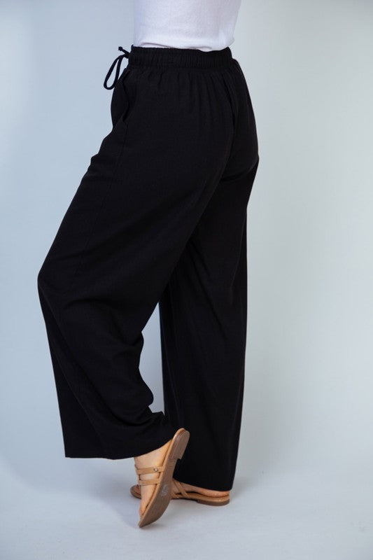 WHITE BIRCH- Black High Waisted Solid Knit Pants