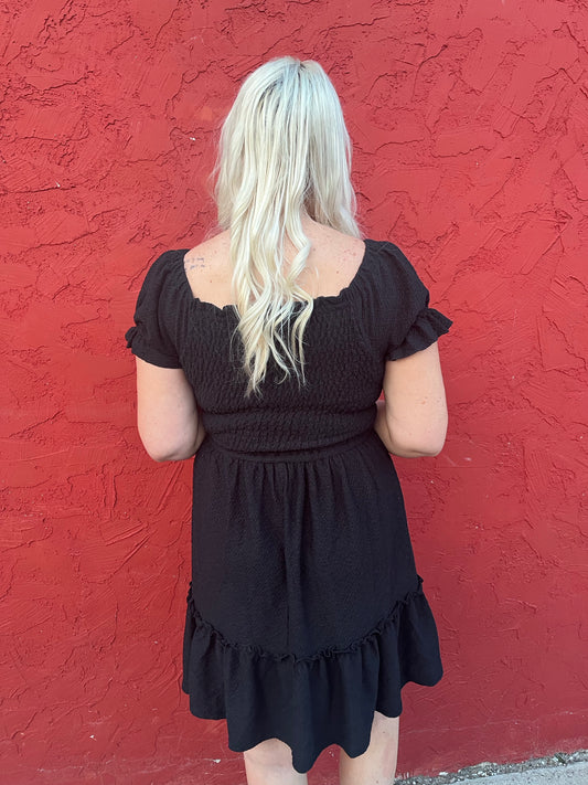 WHITE BIRCH- Tie Front Dress With Textured Sleeve