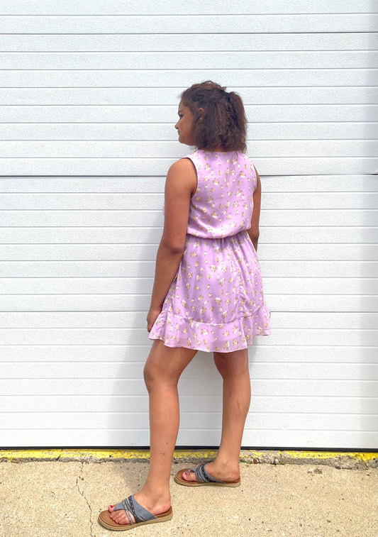 PAPER CRANE- Floral Print Ruffled Sleeveless Dress