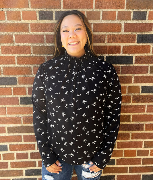 WHITE BIRCH- Long Sleeve Floral Print Knit Top