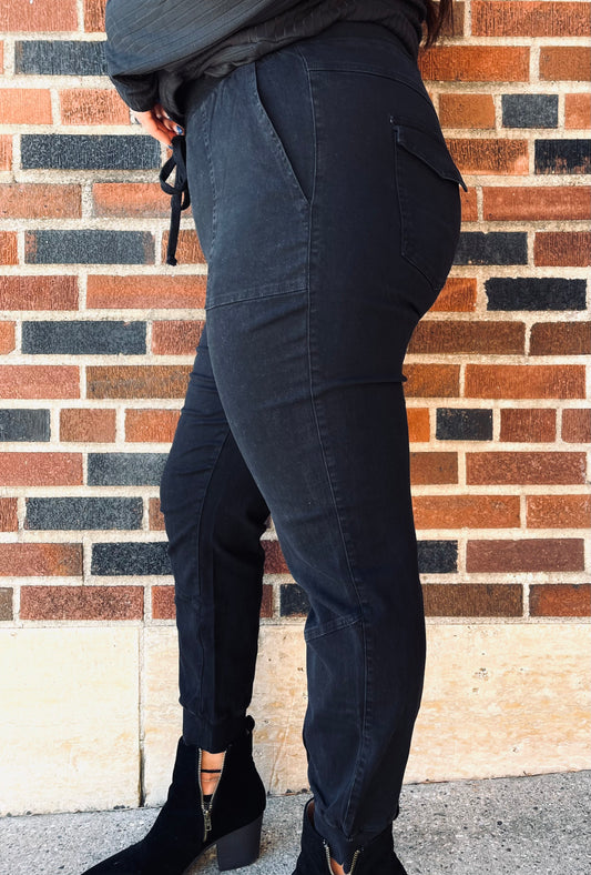 WHITE BIRCH- High Rise Solid Woven Jogger