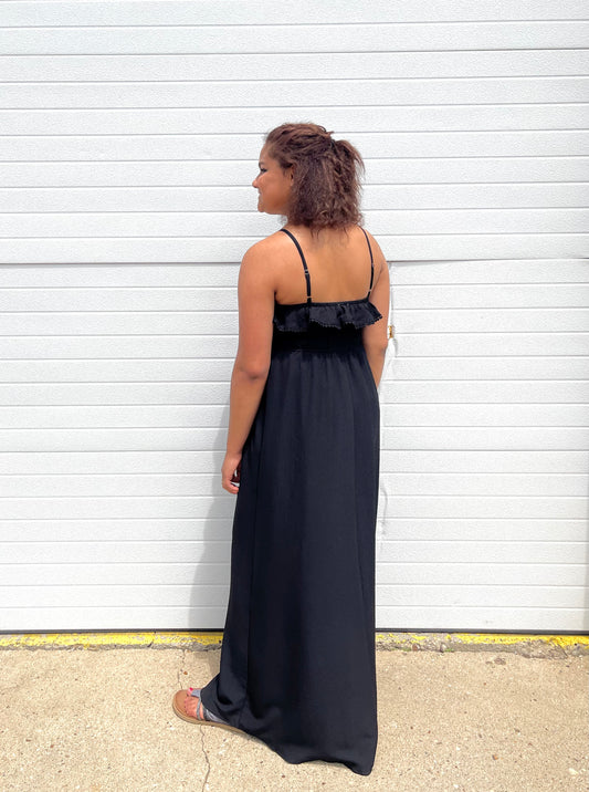 WHITE BIRCH- Lace Trim Maxi Dress