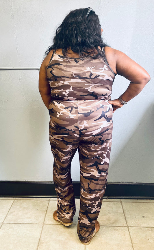 DAVI&DANI- Plus Army Print Sleeveless Long Jumpsuit