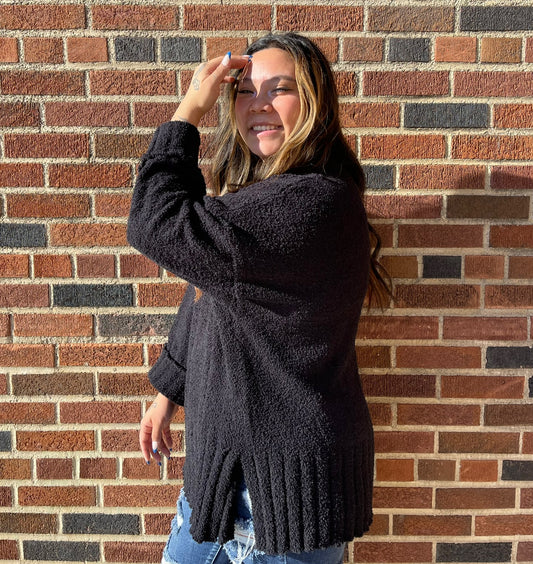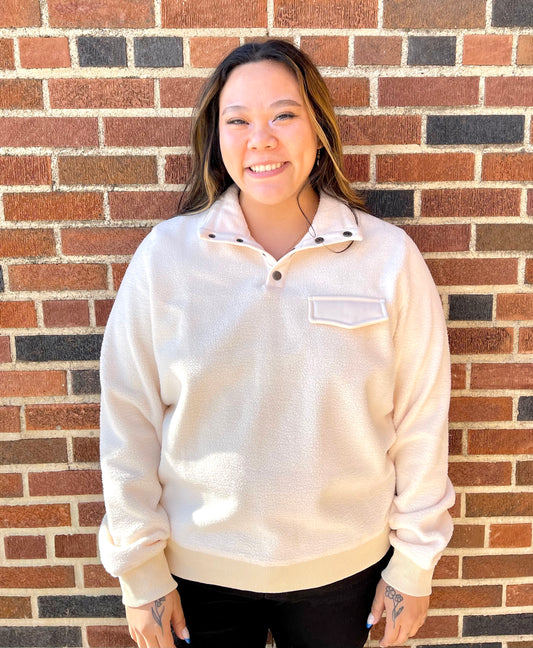 WHITE BIRCH- Long Sleeve Solid Sherpa Knit Pullover