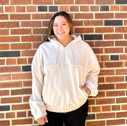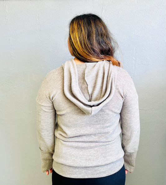 WHITE BIRCH- LS Solid Knit Fleece Hoodie