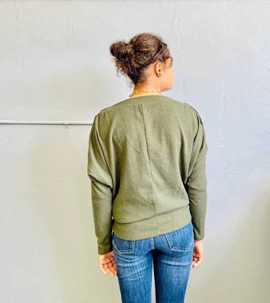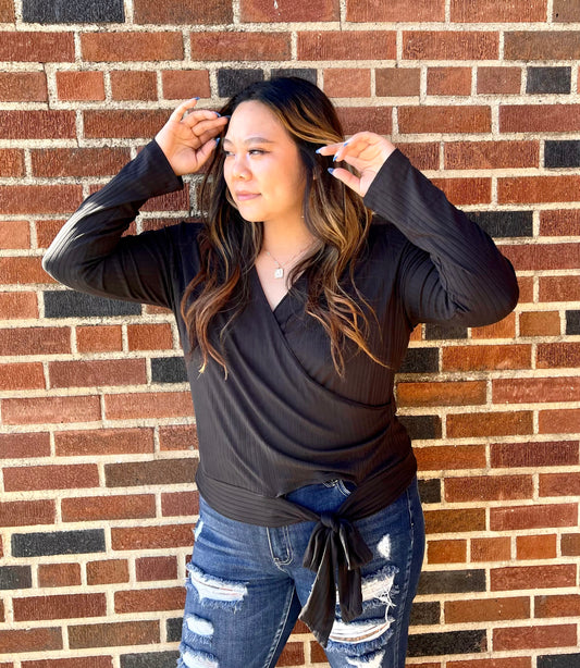 WHITE BIRCH- Long Sleeve Solid Surplice Front Top