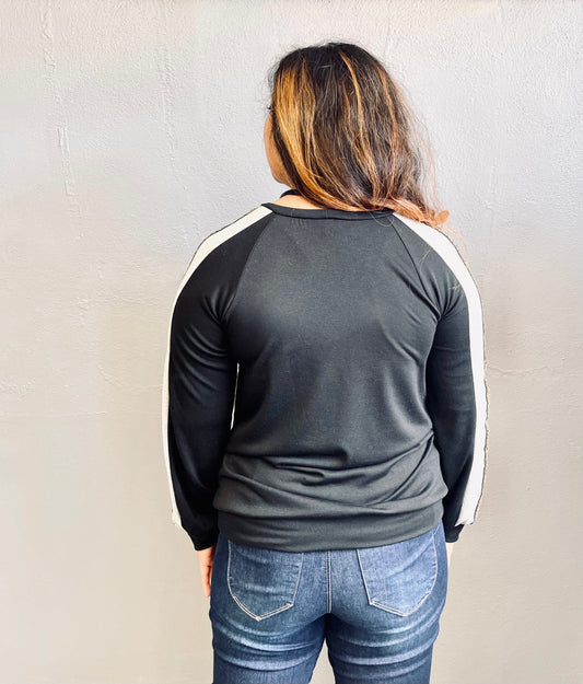 MONO B- CURVY LS Paneled Top w/ Raw Accents