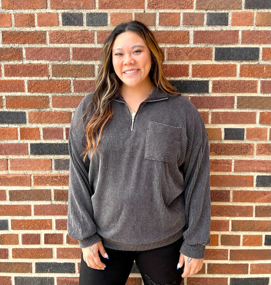 WHITE BIRCH- LS Solid Ribbed Knit 1/4 Zip