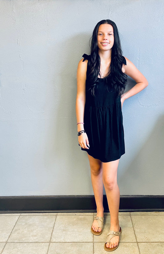 DOUBLE ZERO- Tie Shoulder Babydoll Mini Dress
