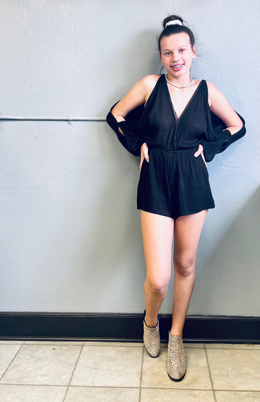 HYFVE- Cold Shoulder Surplice Neck Long Sleeve Romper