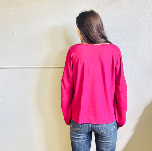SEE & BE SEEN- Bubble Sleeve Knit Top