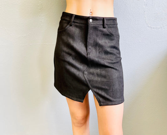 MITTOSHOP- Faux Suede Mini Skirt w/ Front Slit