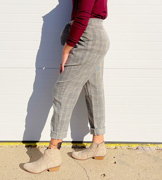 EE:SOME- Self Tie High Waisted Plaid Pants