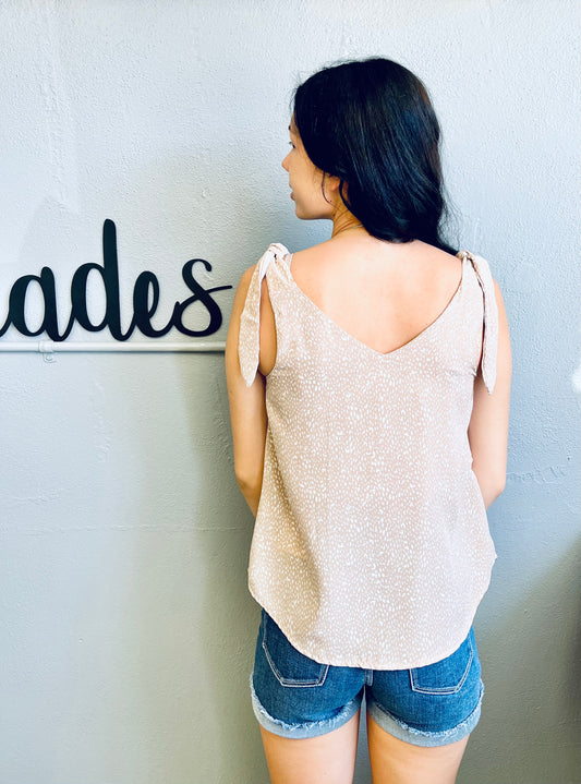 MINE- Tie Strap V Neck Tank w/ Speckled Design