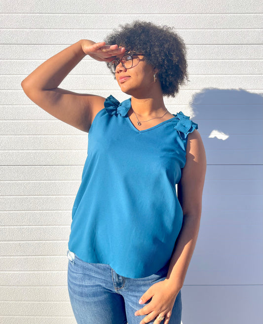 HEIMISH USA- V-Neck Tank Top w/ Ruffle Detail