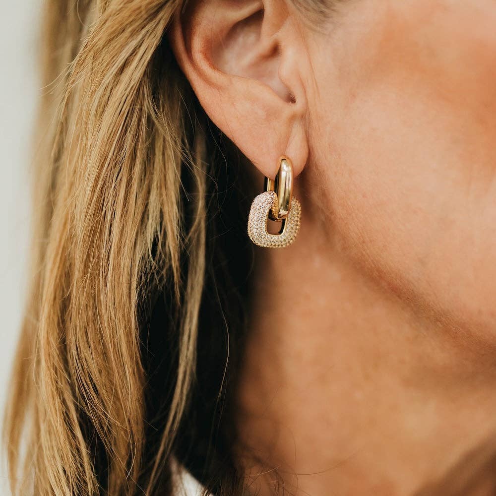 Tiny treasures that hug your ears just right! These square huggie hoops feature sparkling diamonds that catch the light from every angle. The waterproof design means you can wear them anywhere—gym, beach, shower, you name it. Perfect for stacking or wearing solo, these little stunners add instant glam to any vibe. Lightweight, durable, and endlessly versatile, they're the earrings that work as hard as you do.
